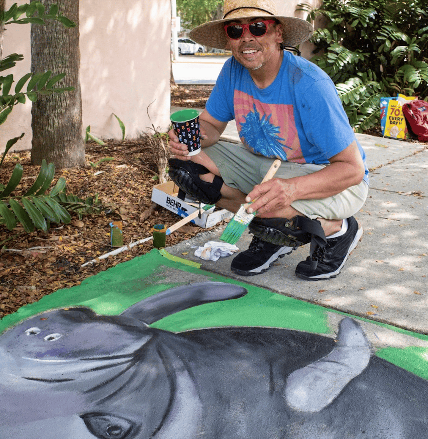 Randall Segura filed a claim for the two squares he painted, including one of a manatee. A Colorado resident, Segura joined the project when he was invited to stay on for a few days after participating in the Chalk Festival. He was offered a stipend of $100 a panel. / Photo courtesy of Randall Segura
